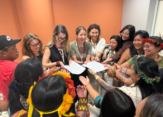 Após a apresentação, as magistradas receberam a Carta das Mulheres Indígenas de Roraima, entregue por Sineia do Vale, enviada especial dos Povos Indígenas para a Cop30, coordenadora do DGTAMC-CIR; Kelliane Wapichana, tuxaua geral do Movimento de Mulheres Indígenas (CIR); e Sara Omi, da Aliança Global de Mulheres Indígenas. Elas ressaltaram as principais recomendações, fizeram a leitura de trechos importantes e destacaram o papel das mulheres nas ações climáticas e a articulação internacional para o fortalecimento dessas vozes.